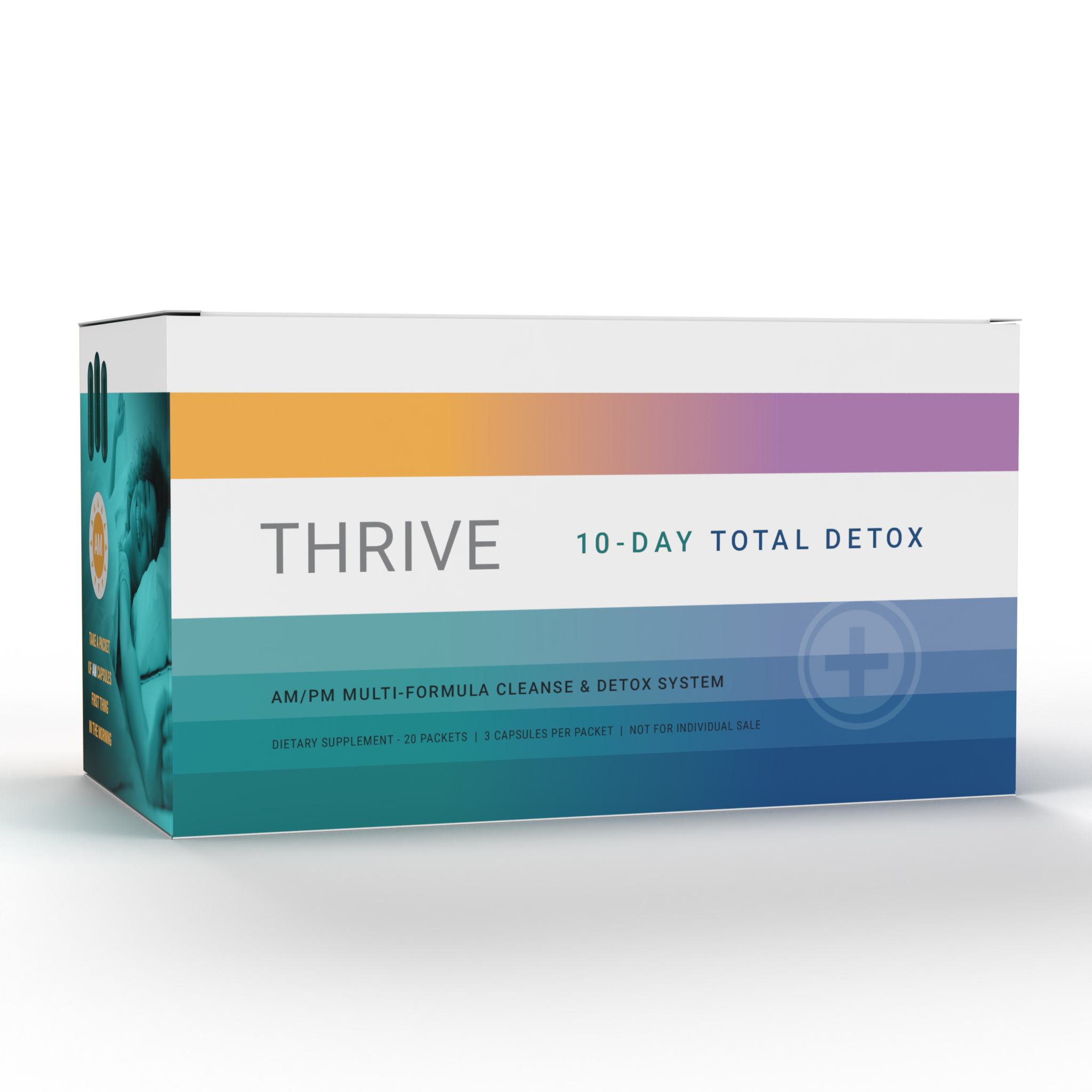 Show your system some love & reboot your body with THRIVE 10-Day Total Detox. This dual AM\PM metabolic detox formula is intended to assist the body in the removal of toxins and heavy metals, and is ideal for supporting weight management, gut health, energy, stamina, mental clarity, rest, overall mood, nutrient absorption and more.